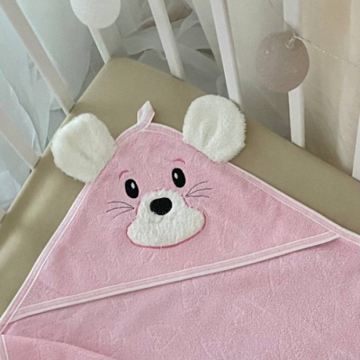 Детское полотенце-уголок махровое Лапуся розовый, 90х110