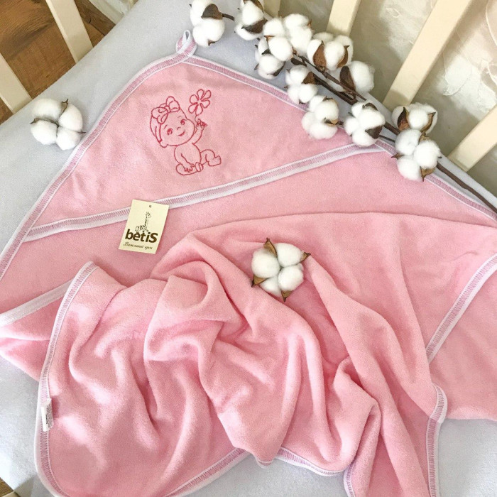 Детское полотенце-уголок махровое Пупс розовый, 75х90