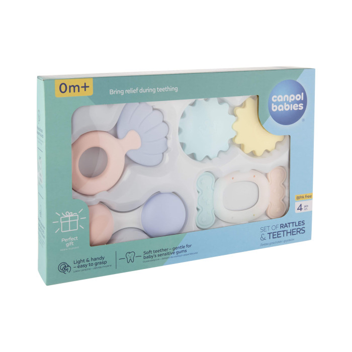 Canpol babies Pastel — это отличный вариант подарка для новорожденного, baby shower, крестин или первого визита к малышу. Набор подходит для детей от 0 месяцев и может стать одной из первых любимых игрушек ребенка.