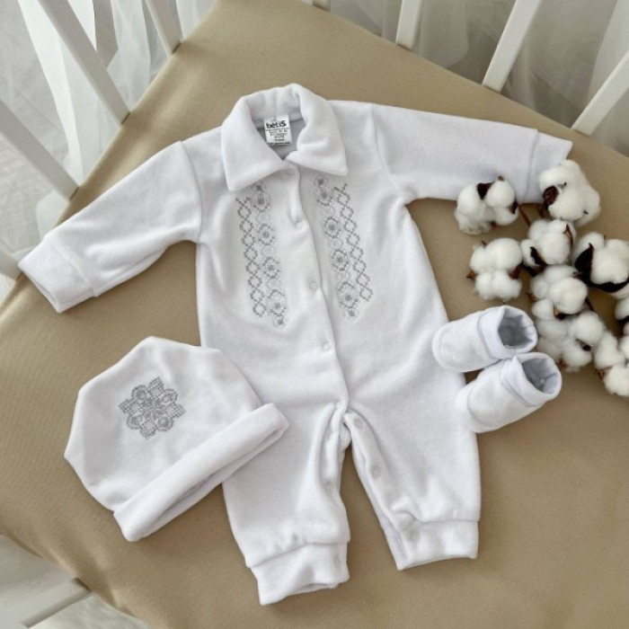 Крестильный комплект для мальчика Ярема велюр серебро